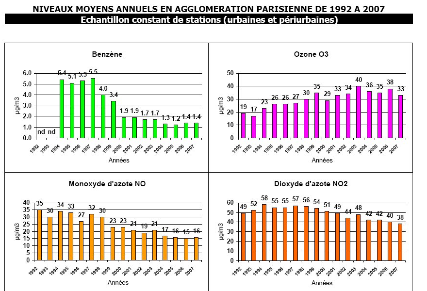 Ainsi, si l'on prend l'évolution sur Paris des poisons gazeux on s'aperçoit que depuis 10 ans: