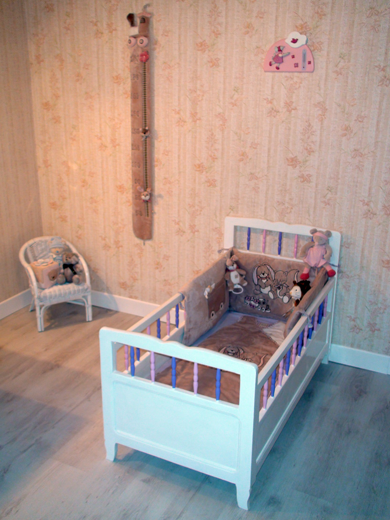 Afin de devancer vos remarques concernant le berceau, qui était le mien il y a 30 ans de cela, fait par mon grand-père menuisier : je "remonterai" les barreaux lorsque bébé sera en âge d'escalader ;)
