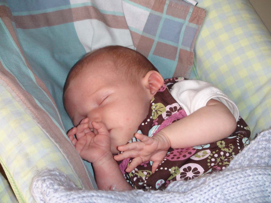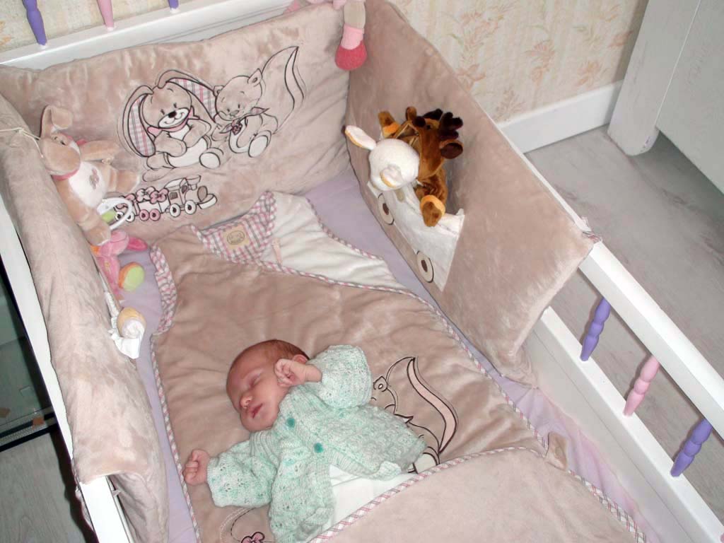 Maman s'inquiétait beaucoup les premières nuits car Jade, très éveillée en journée, dormait la nuit 8 heures non stop, sans faire un bruit, sage comme une image, contrairement aux bébés des chambres voisines et leurs cris 24h/24 :??: